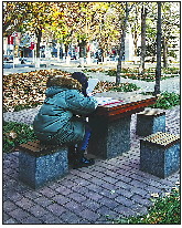渐入深冬,黄绿色的杨树叶随风飘落下来,不时落在专注诵读的学生身上,让人有些感动。