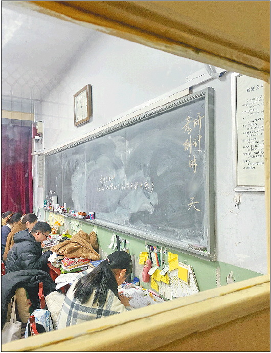 一面半旧玻璃上,用大红胶带贴成的“超越自我 自强不息”几个大字格外醒目。走廊里,全副武装的学生们忙着背书,路人行经这里,他们甚至顾不上抬头看一眼。