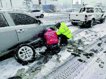 12月14日8时许,威海市区持续降雪,威海交警六大队民警在威青一级路巡逻时,看到一辆小型轿车停放在路边,民警迅速上前,得知该车因雪天路况不良导致爆胎,考虑到车停靠在路边有安全隐患,民警马上协助驾驶员更换备胎,以最快速度完成了换胎,司机得以继续前行。