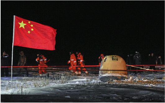 12月17日凌晨,嫦娥五号返回器携带月球样品,采用半弹道跳跃方式再入返回,在内蒙古四子王旗预定区域安全着陆。 新华社发