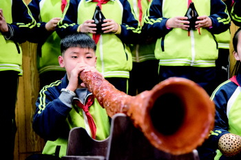 12月7日,一场别开生面的音乐演奏在宁津县棠湖小学上演,27名学生或吹埙、或抚笛、或摇铃、或打鼓击缶,或吹响长号,奏响了一曲《龙的传人》。值得一提的是,所有学生手中的乐器均为陶土制成,这就是棠湖小学独具特色的“陶乐队”。