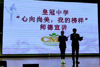 师德宣讲 为深进一步加强教师职业道德建设,近日,皇冠中学开展“心向尚美,我的榜样”师德宣讲比赛。(万芷毓)