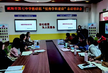总结展示 近日,威海七中开展教研组“优势学科建设”总结培训会,各教研组长针对本组优势学科的建设和工作亮点进行总结展示。(于滨泽)