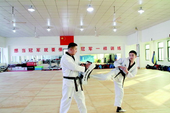 忍耐克制、谦逊有礼、顽强果敢,潘越因为跆拳道成就更好的自己。 (张骞)