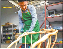 张永朋对“树椅”进行加工。