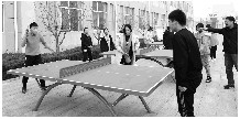 昌乐县红河镇中学的学生正在打乒乓球。