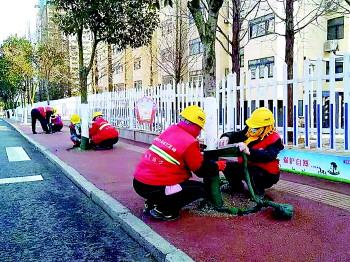 刘国伟介绍,最近几天,工人们加班加点对树木进行防寒保温措施,每天晚上工作到九点多。同时,集团提前安排做好对一线园林环卫工人防寒物资的发放,并合理调整人工作业时间,避开最寒冷的时间段进行户外作业,在恶寒天气下形成以机械作业为主,人工作业为辅的作业模式,多点发力保障市容环境整洁靓丽。