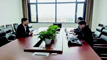 ▲图为派驻第二纪检监察组到文登区公共资源交易中心对分管负责人进行谈话提醒。