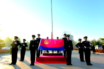 随后,奏唱警歌迎警旗,重温入警誓词。护旗手高举中国人民警察警旗阔步前行,全体庄重地向警旗敬礼,以最高的礼仪迎接中国人民警察警旗。伴着《人民公安向前进》的雄壮旋律,全体高唱警歌,以饱满的热情、激扬的歌声,展现了对党的无限忠诚,表达了对警察职业的无限热爱。“我志愿成为中华人民共和国人民警察,献身于崇高的人民公安事业……”发自肺腑的誓词久久回荡,句句铿锵。全体人员在领誓人的带领下,高举右手,用坚定的誓言书写干事的热血和激情。