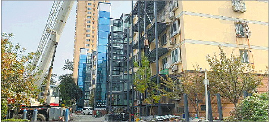 济南一老旧小区正在加装电梯。(资料片) 齐鲁晚报·齐鲁壹点 王杰 摄