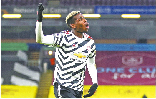 这一场博格巴真切地凭借世界波帮助曼联登顶积分榜。 新华社发