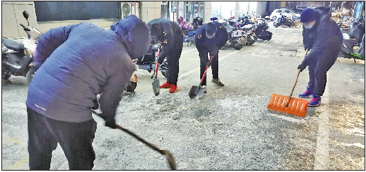 寒潮来袭,街道应急抢险队员第一时间巡查抢险。