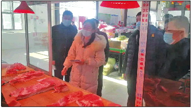 工作人员在对市场业户进行检查。
