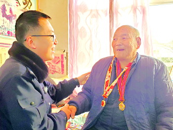 老人身上的两枚纪念章,一枚是“庆祝中华人民共和国成立70周年”纪念章,一枚是“中国人民志愿军抗美援朝出国作战70周年”纪念章。戴上纪念章后,老人忽然开口说:“这个章有个地方松动了,你帮我修修。仔细点,别给弄坏了。”“好,一定帮您修好,不给您弄坏。”31岁的孙子包德璐笑着回复爷爷。