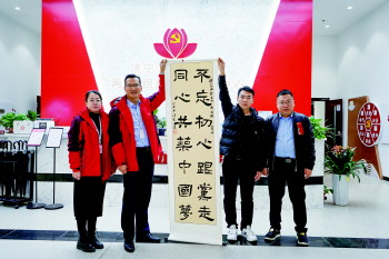 楼宇内的企业为太白湖新区“两新”组织党群服务中心赠送墨宝。