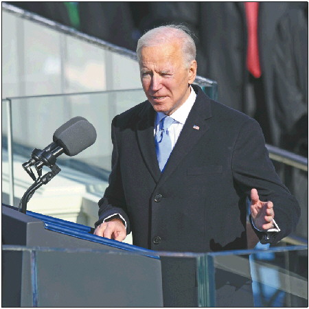 当地时间20日,拜登在总统就职典礼上发表讲话。 新华社发