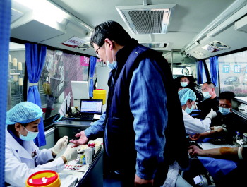 77名职工参加无偿献血活动。 吕伟艳 摄