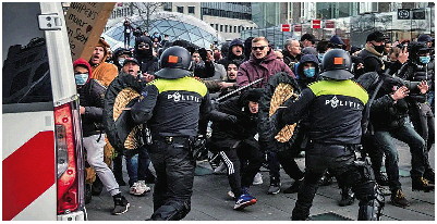 1月23日至24日,荷兰多地发生反对防疫封锁措施的抗议活动,示威者与警方发生冲突。