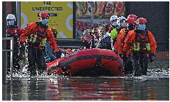 1月21日,英国诺思威奇因暴雨引发洪水,救援人员疏散养老院的老人和工作人员。 新华/法新
