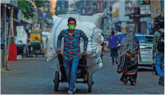 1月28日,在印度孟买,一名男子在街上拉着一辆满载货物的手推车。 新华/法新