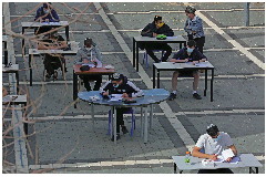 1月27日,在以色列莫迪因的一所高中,学生佩戴口罩、保持社交距离参加期末考试。 新华社发