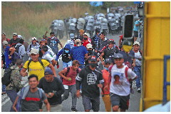 1月18日,在危地马拉边境小镇巴多翁多,中美洲移民被安全部队阻拦和驱散。 新华社发