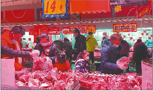 “挑上几块,下周就该包水饺喽。”市民李女士一边说着一边挑选着心仪的猪后腿肉。李女士说,她和老伴逛超市正巧碰上了储备冻猪肉发放第一天。眼看着手里的袋子快满了,李女士还是没有停手的意思,转身又拿了个袋子装了两块。