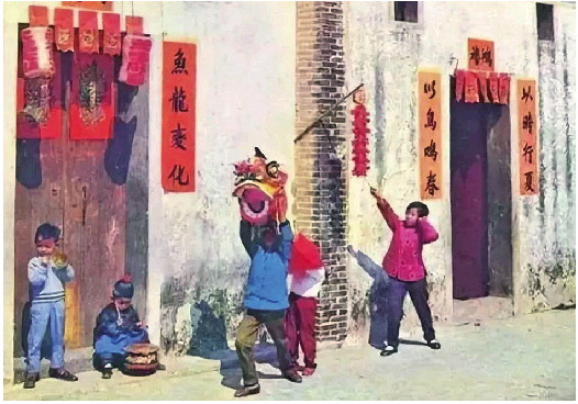 年三十这天最热闹,人们早早起来洒扫庭院,吃了早饭便要贴春联了。喜庆的春联一贴上,年味就浓了起来。那联上有写风调雨顺的,有写恭喜发财的,有写保佑平安的,有写福禄寿喜的。除了在门框上贴春联,还要在猪圈门上贴“六畜兴旺”,在大门口贴“出门见喜”和“迎门见喜”,在床头上贴“身体健康”,在麦缸上贴“人寿年丰”,有车的人家还要在车头上贴“出入平安”……这些红纸黑字里,寄托着农民朴实的美好心愿。