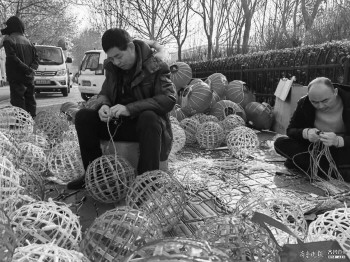 工作人员正在组装灯球。