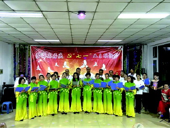 在银滩碧海名居会所,有一支由20名文艺爱好者组成的艺术团——银滩碧海之声红色艺术团。每天,上午10点,一阵阵悠扬的歌声从碧海名居会所飘进人们的耳中。他们当中的成员年纪都在60岁以上,艺术团创始人倪宝林,是一名文艺爱好者,退休之后来到银滩,2016年成立了银滩碧海之声红色艺术团,成立的目的就是想通过唱红歌,弘扬主旋律,丰富银滩业主文化生活。