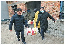 商河县中医医院工作人员为贫困群众送去慰问品。