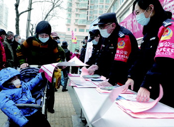 2月3日上午,在前海利群超市门前,青岛市公安局治安支队联合市南分局组织开展禁止燃放烟花爆竹宣传活动。民警提前准备了印有禁放政策和宣传口号的横幅、挂历、《致居民一封信》等宣传材料,向过往市民发放。