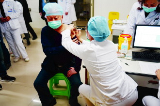 按照医院防控重点岗位工作要求,首先安排发热门诊、急救中心、医学重症、门急诊预检分诊、呼吸科、儿科等科室一线医护人员完成第一批次接种任务。