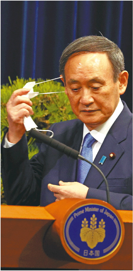 日本首相菅义伟4日在东京举行记者招待会,就新冠疫情防控、经济发展、外交等内容发表讲话,强调应对疫情是当务之急。 新华/路透