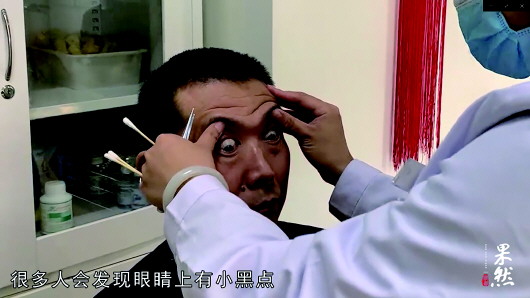 在进行眼针带针康复疗法之前,李爱华先通过眼珠转动观眼识病,她还特别提示,很多人眼睛里的红血丝一端会有小黑点,其实这叫“垂露”,出现这种情况可能会有患脑血管病、脑梗塞、脑出血的风险。