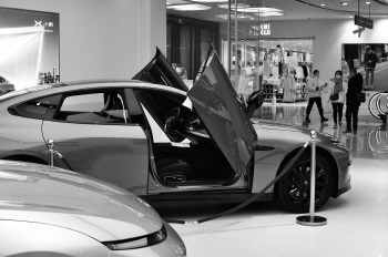 小鹏汽车万达店展示的P7四驱高性能鹏翼版。