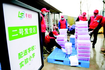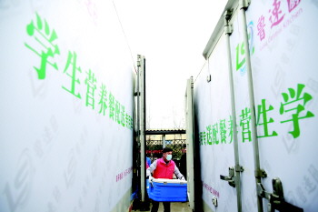3月1日上午9点30分,山东鲁速央厨餐饮管理有限公司的工作人员正在将热气腾腾的餐食装入保温箱,车间内工作人员前期经过体温检测、更换衣物、洗靴消毒,“全副武装”地忙碌着。水果盒外贴有学校班级的专属标记,工作人员装入保温车后贴上“学生营养餐公车”封条,锁上电子锁,随后由身着统一工作服,戴着手套、口罩、帽子的送餐人员,把一箱箱热气腾腾的饭菜、一桶桶美味可口的靓汤送到孩子们的餐桌,这标志着日照中小学“美好午餐”新模式正式启动。