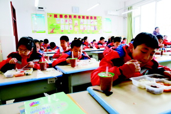 “午餐集中配送解决了家长们中午接送孩子的难题,学校针对午间配餐提前进行了好几次演练,并配备洗手液、餐巾纸、用餐垫、备用餐具等,还会反复告诉学生们要认真洗手消毒,鼓励他们不挑食,人人争做光盘小模范,对于吃完的餐具进行垃圾分类。”李梅说,“午间配餐结束后,最重要的是要开展好课后服务工作,包括作业辅导、文体活动等丰富多彩的课后服务项目,利用好这个时间做好课后作业,做到作业不出校门,老师及时批改。”