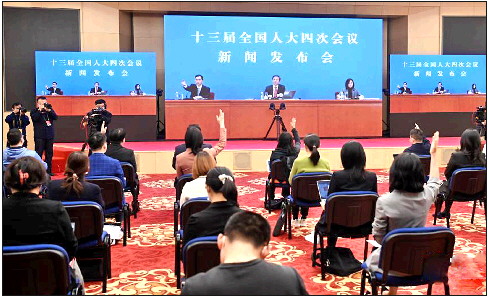 3月4日,十三届全国人大四次会议新闻发布会在北京人民大会堂新闻发布厅举行。