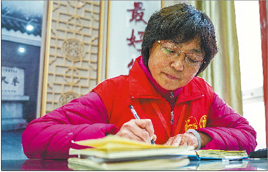 毕霞在写志愿服务日记。 齐鲁晚报·齐鲁壹点记者 康岩 摄