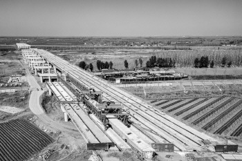 记者走上桥面看到,一榀箱梁正静静躺在架梁机上等待架设。“泗河大桥全长969.5米,需架设240榀箱梁,目前已架设54榀。”褚海洋说,箱梁采用的是装配式建筑的施工工艺,全部是在制梁场预制完成的。“2月22日是开工第一天,一天就完成了4榀箱梁的架设任务。”褚海洋介绍,这种施工工艺就像是搭积木,箱梁从梁场预制完成运至施工现场,通过架梁机直接放在盖梁上就可以,大大节约了施工时间成本。“根据工程进度,泗河大桥可于今年6月底实现主体工程的完工。”