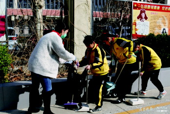 随后,少先队员们在辅导员老师们的带领下,拿起扫帚、抹布、垃圾袋对校园以及周边的环境进行清扫。大家发扬不怕脏,不怕累的精神,分工明确、协同配合,保证不留任何死角。