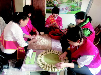 独居老人也是志愿者们挂念的对象。在王林庄村,志愿者们聚在一起为有需要的特殊人士家里擦玻璃、扫地、整理杂物。除此以外,她们还不忘关怀老人的身心状况,为老人包香喷喷的饺子,倾听他们内心的声音,将关爱和温暖落到实处。