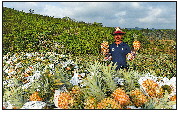 10日,在万宁市龙滚镇凤园村,工人展示采摘下来的菠萝。近日,海南省万宁市迎来菠萝采收季,本地企业、农户积极组织工人采收菠萝,田间地头一派繁忙景象。 新华