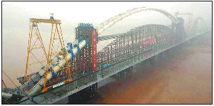 本次合龙创下四项第一:整体提升重量6800吨,为世界之最;在黄河上首次采用提升合龙技术;世界桥梁中首次采用不单独设置合龙段进行拱肋提升合龙作业;它还标志着世界上最大下承式网状系杆拱桥主跨合龙完成。