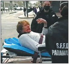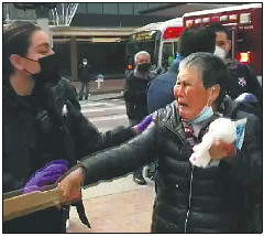 当地时间17日,在美国旧金山市场街,一位70多岁的华裔老奶奶在街边等待绿灯过马路时,突然遭到一名30多岁白人男子袭击,后者朝她面部打了一拳,这位老奶奶下意识蹲下来后,正好碰到手边一根木棍。当她发现那名白人男子还想再冲过来时,这位老奶奶抓起木棍奋起反击。
