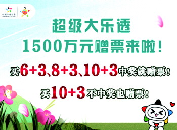 阳春三月,春暖花开,大家喜爱的体彩超级大乐透又有活动啦!1500万元赠票活动已经开启,买大乐透“6+3”、“8+3”、“10+3”中奖就赠票!买“10+3”不中奖也赠票!