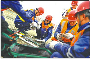 为了保证接触网的正常运行,需要24小时都有人在岗,马芮琳和同事们白天在车辆段检修,深夜电客车结束当日的运营入库后就步入正线轨道为接触网“体检”。他们需要携带的工具有20多种,工器具、零件有大有小,加起来约50公斤。地铁1号线线路总长26.1公里,接触网线路约74条公里,约十万个螺丝。马芮琳身上系上安全带,熟练地爬上四五米高的梯车,打开头灯、拿出扳手,对所有的接触悬挂、定位点进行力矩紧固,不放过任何一个螺丝。“咚、咚、咚”,工器具敲打螺栓的声音,在绵长寂静的隧道里格外清晰。有时,马芮琳还会拿着手电和同事进行步巡,王府庄站—玉符河站区间大约3公里,她背着重重的工具包往返巡视。
