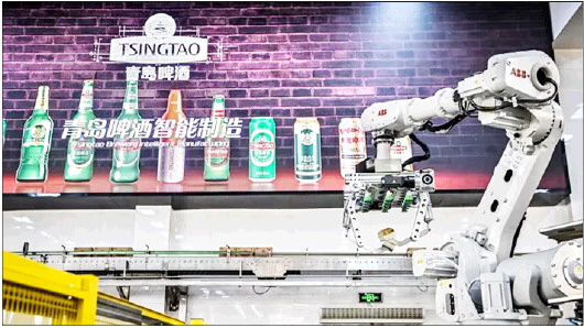 最近几年,像北京冬奥会冰雪罐这样的定制产品越来越多,对于每小时生产6万-8万罐啤酒的巨无霸生产线,生产15箱啤酒也就10秒,既要保持规模化和高效率,又要频繁进行小批量定制产品转换,商标、瓶型、包装随时调换,对于分拣、检测、配送都提出极高要求。新技术的应用使青啤在定制啤酒市场份额和营收方面分别增长了33%和14%。