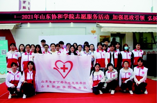 3月27日上午,山东省献血办公室与山东协和学院护理学院在万虹广场献血房舱共同举办了“加强思政引领 弘扬志愿精神”主题实践暨2021年山东协和学院南丁格尔志愿服务活动。